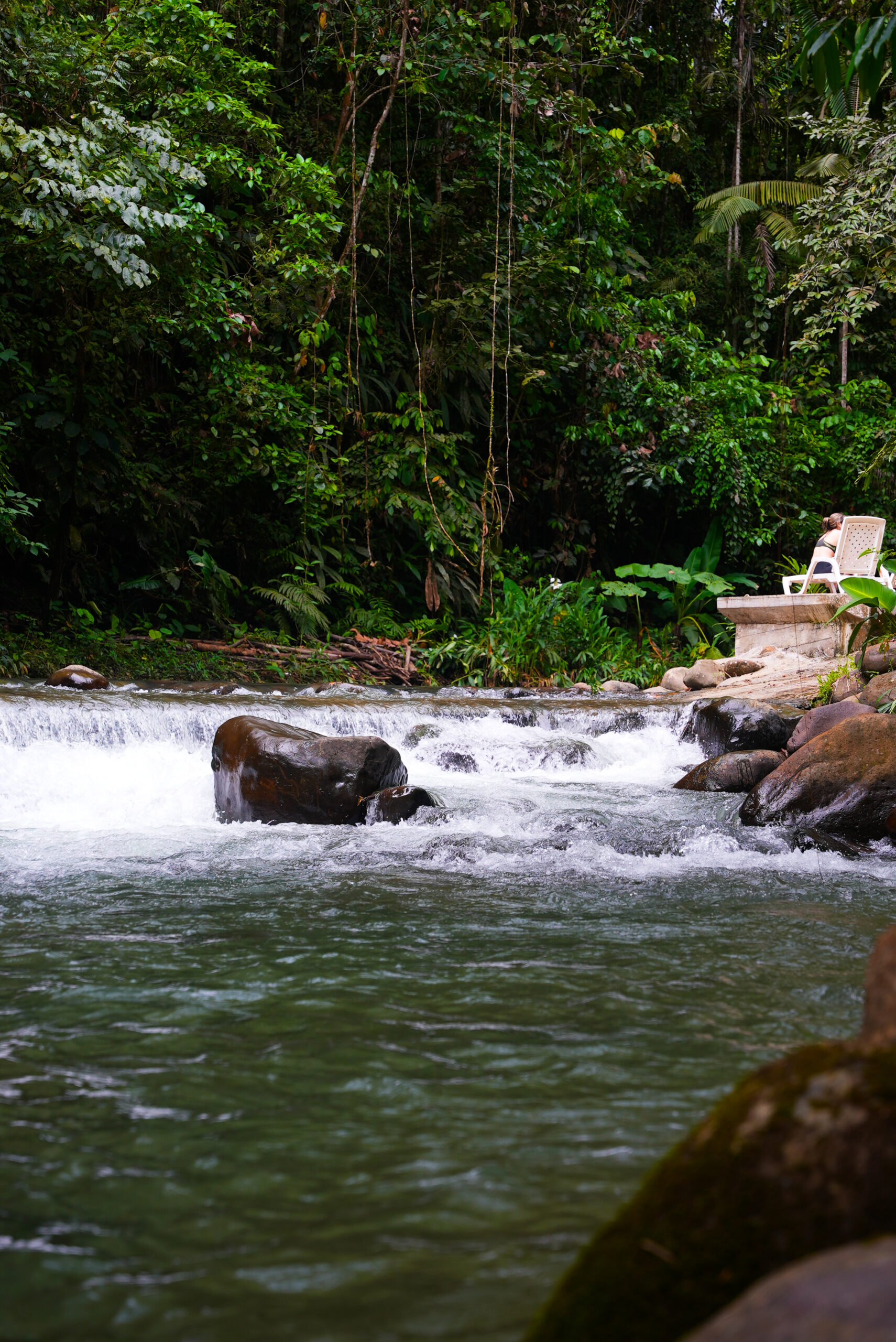 Refresca tu cuerpo y mente en las quebradas y aguas naturales que atraviesan la finca. Un espacio perfecto para descansar y conectar con la naturaleza.